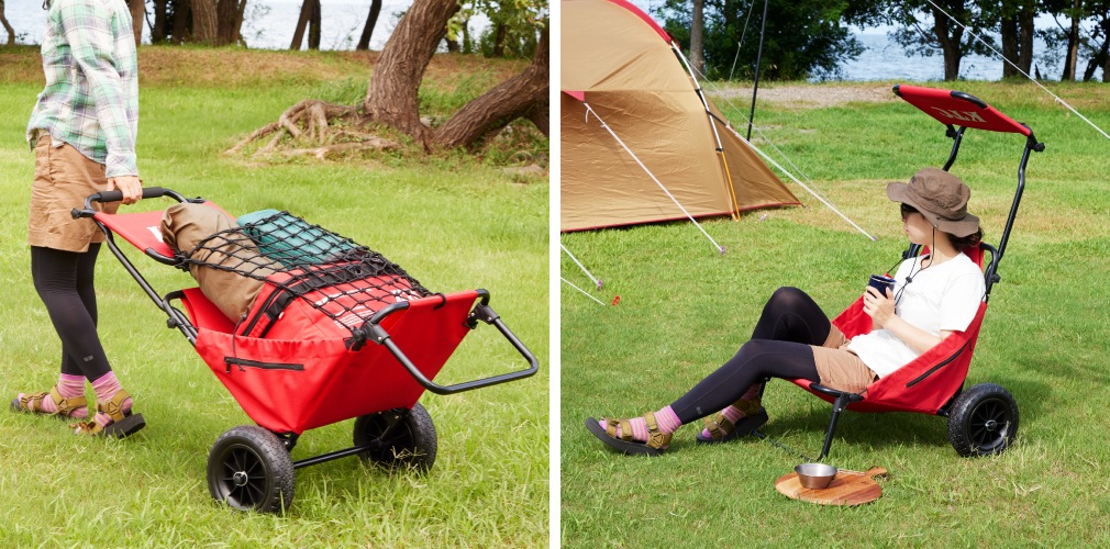 荷物を運ぶ台車にも座り心地の良い椅子にもなるバギーカーチェアです。